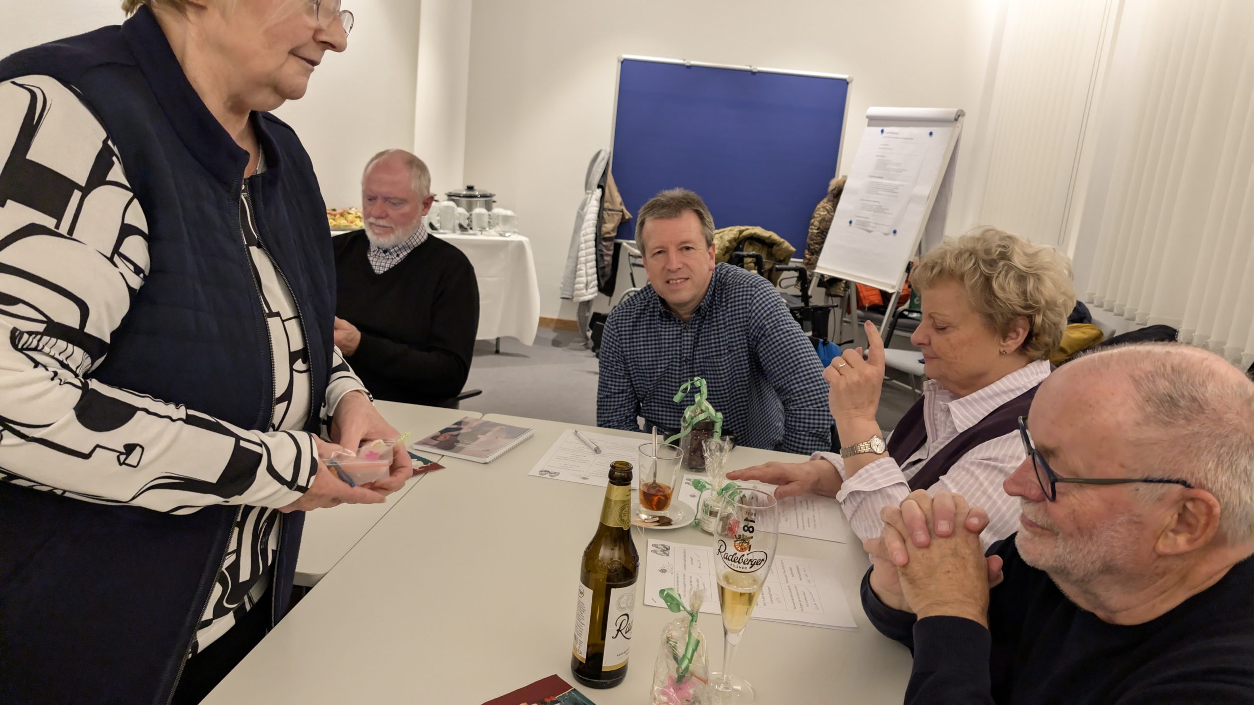 Unser Dank gilt Steffi Fust, sie hat uns mit ihren Weihnachtsfragen herausgefordert und als Preise allen Anwesenden eine riesige Freude bereitet.